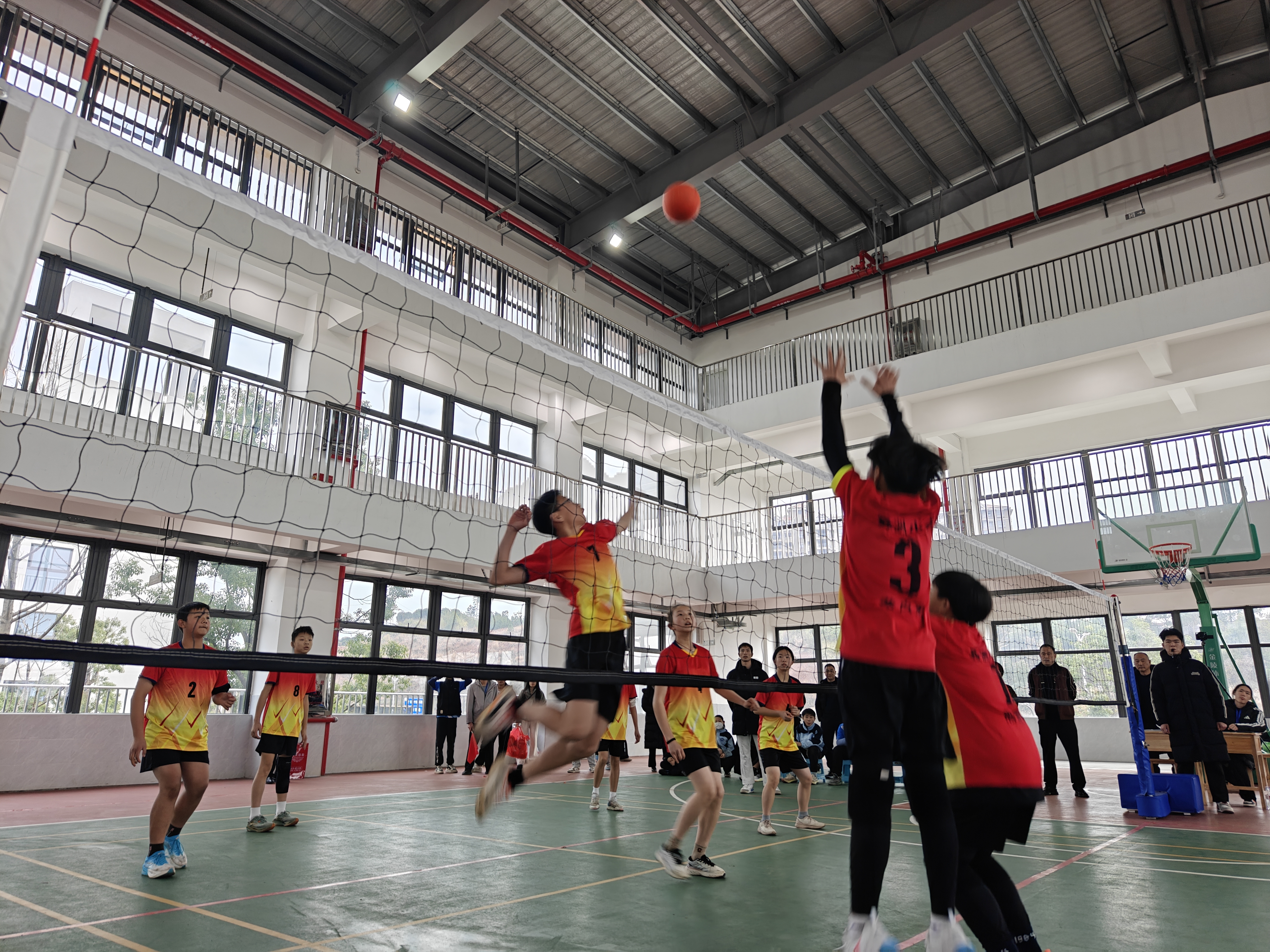 赛场上,春晖小学的排球小将们精神抖擞、斗志昂扬。发球线上,队员凝心聚力发出精准落点球;防守时,队员们默契配合,多次跪地救起险球;进攻端,主攻手腾空跃起的扣杀势大力沉,引得现场掌声雷动。总决赛中,面对强劲对手,队员们沉着应对,在暂停间隙快速调整战术,凭借灵活跑动与精妙传接撕开对方防线。小将们用汗水诠释了“更快、更高、更强——更团结”的奥林匹克精神,展现了新时代少年的蓬勃朝气。