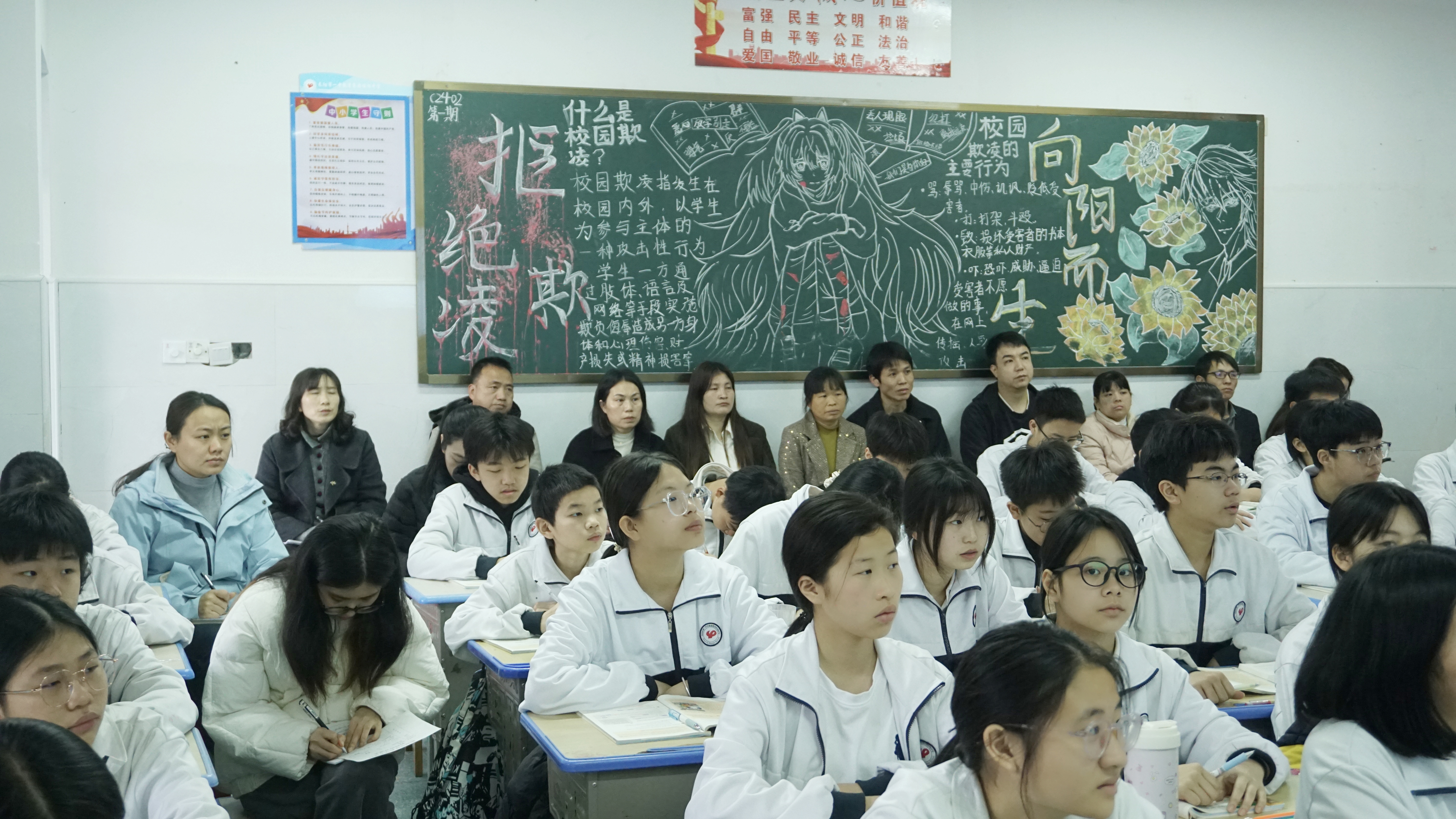 课堂结束后,学校同步开展家校交流座谈会。在座谈会上,各班级班主任与任课教师结合课堂表现,详细汇报学生学习情况、班级管理计划,针对学习习惯培养、亲子沟通等问题细致解答。家长们踊跃发言,分享感受、提出建议,现场氛围融洽,家校共识进一步凝聚。