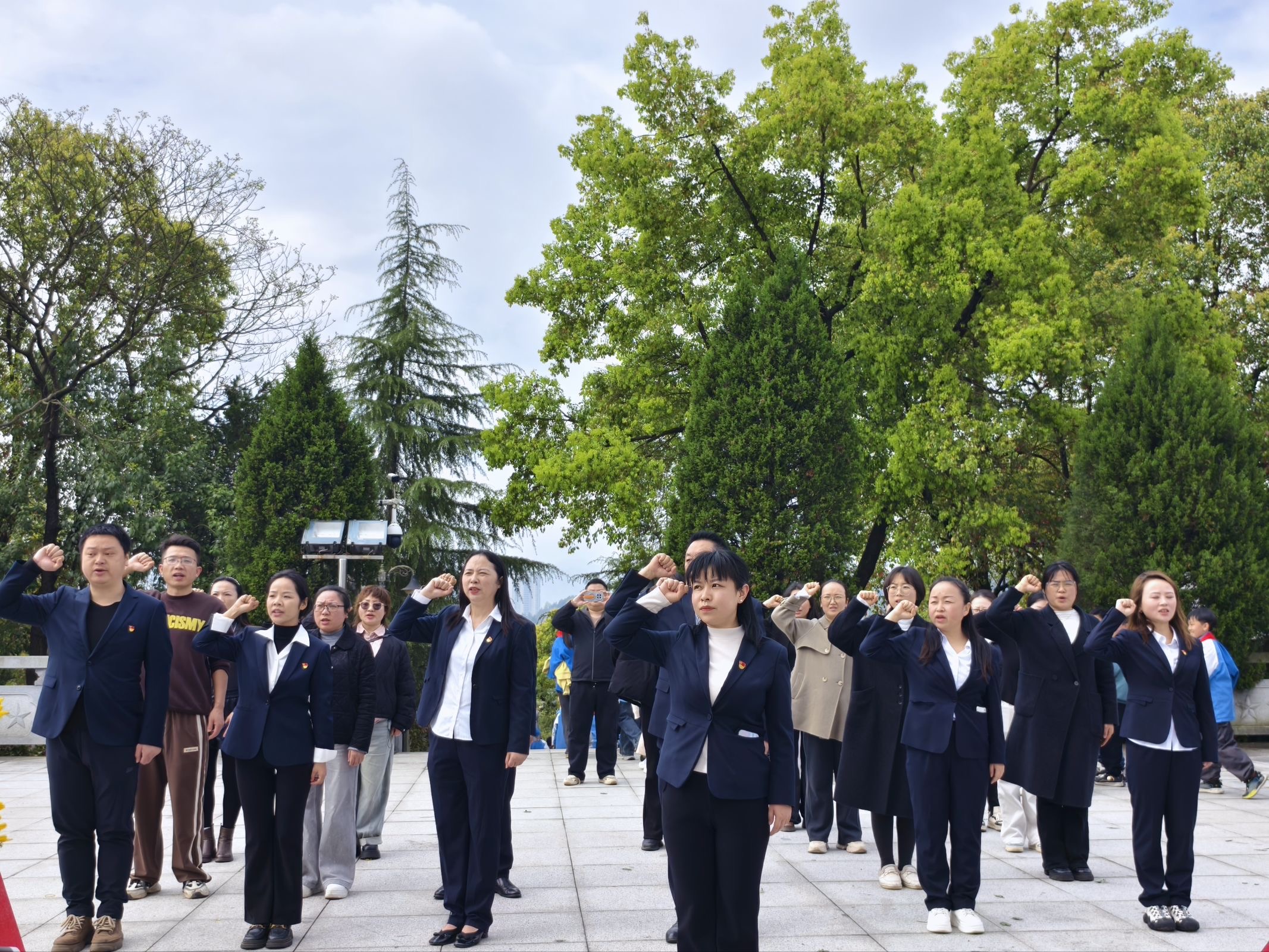 在少先队队旗下,同学们高举右拳,重温入队誓词。铿锵有力的誓言在陵园上空回荡,表达了同学们继承先烈遗志、争做时代新人的决心。党员教师们也在党旗下重温了入党誓词。