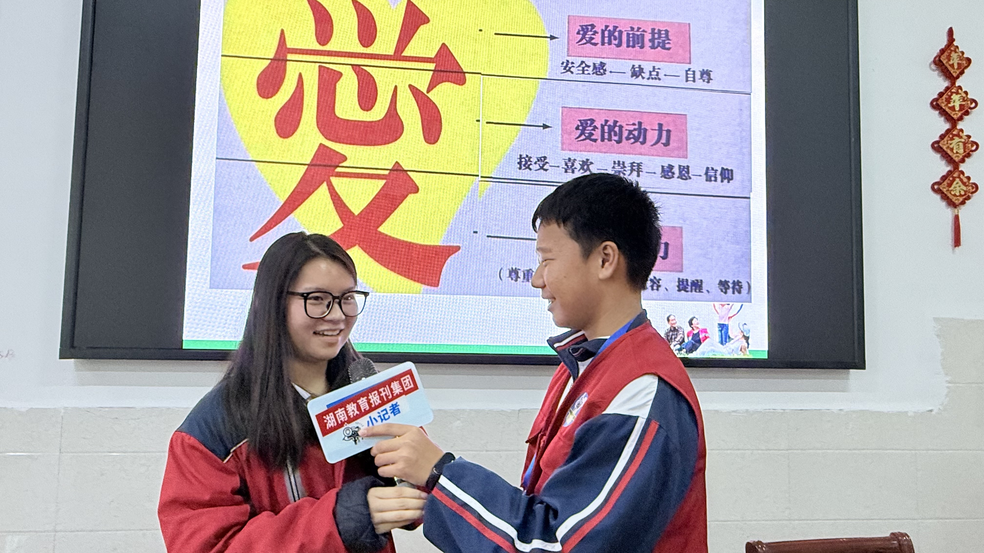面对小记者采访刘建恒表示,讲座核心是让大家明白“爱需方法,更要双向奔赴”。他对高三学生说:“高考压力下,要接纳情绪、坦诚沟通,家长也要以陪伴倾听代替催促,让家庭成为冲刺加油站。”