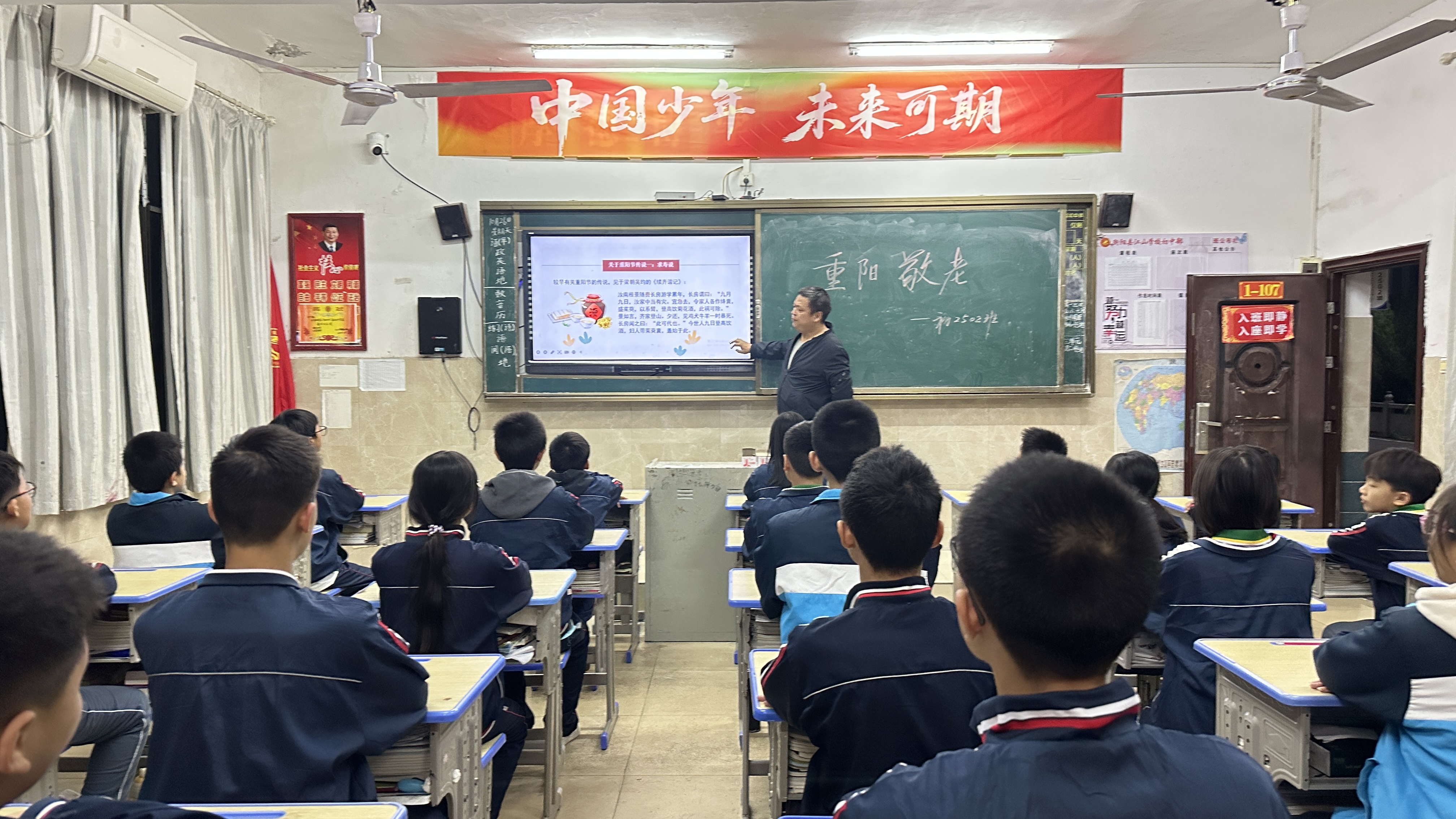 清晨的校园里,国旗下主题讲话拉开了活动序幕。学生代表以“重阳话敬老”为主题,分享重阳节的文化内涵与敬老故事,号召全体同学将感恩之心融入日常。随后,各班级召开主题班会,通过视频、图片等形式,带领同学们深入了解重阳节的起源与习俗,在互动讨论中深化对“尊老、敬老、爱老”传统美德的认知。