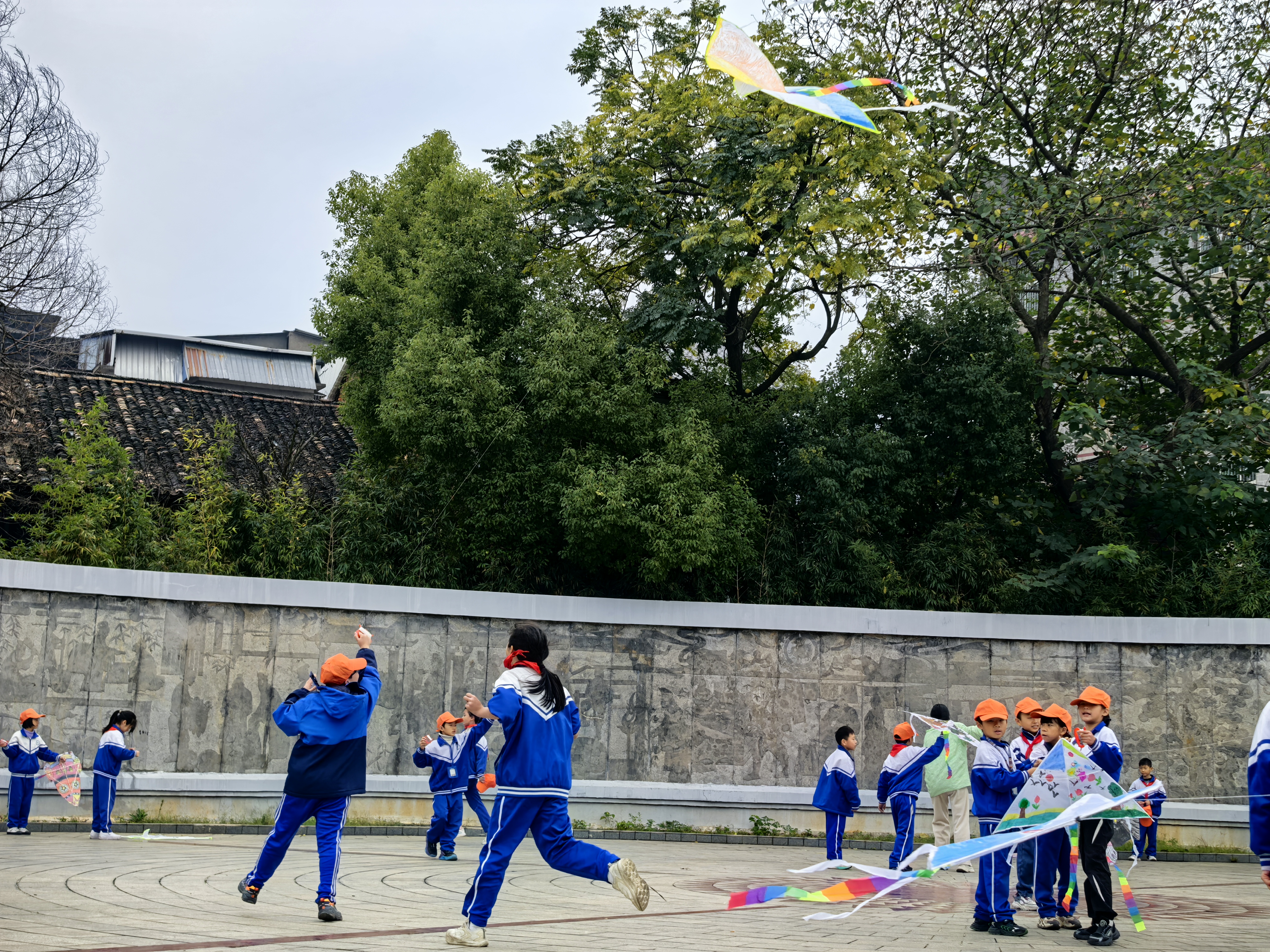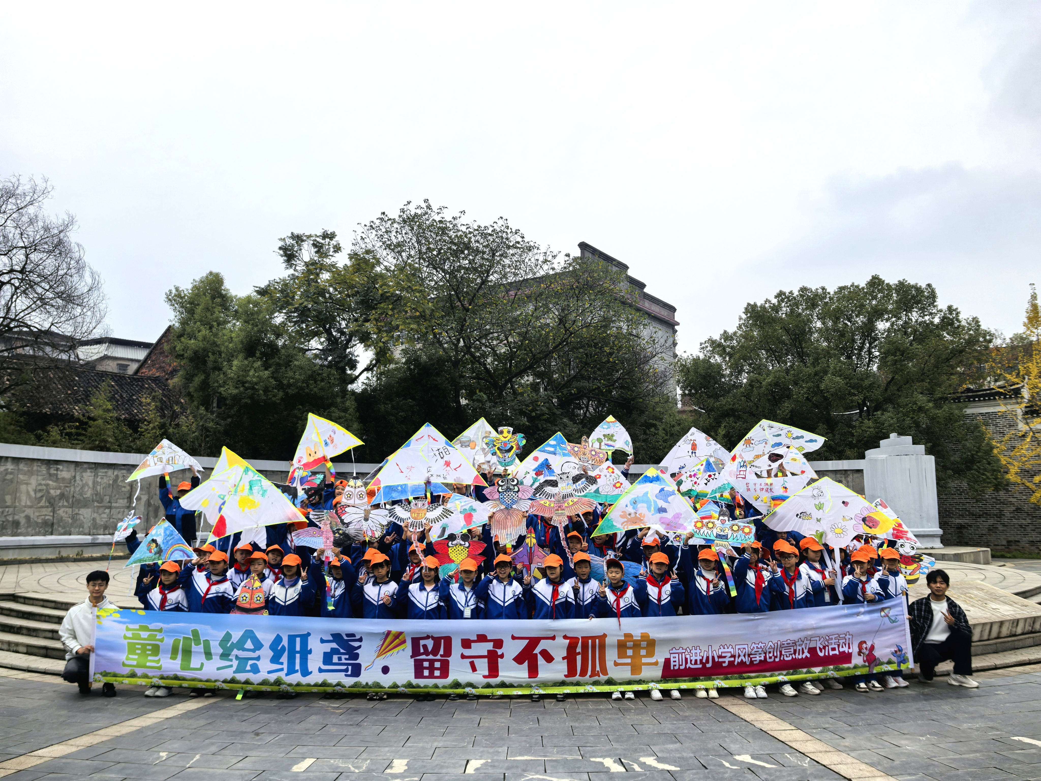 绘制完成后,大家来到了德育基地——蔡伦纪念园。手持独一无二的风筝,同学们雀跃地奔向草坪。随着奔跑的身影,一只只承载梦想的风筝相继升空。纪念园上空瞬间化作流动的彩虹,五彩斑斓的风筝与古老的蔡伦雕像交相辉映,构成一幅古今对话的壮美画卷。