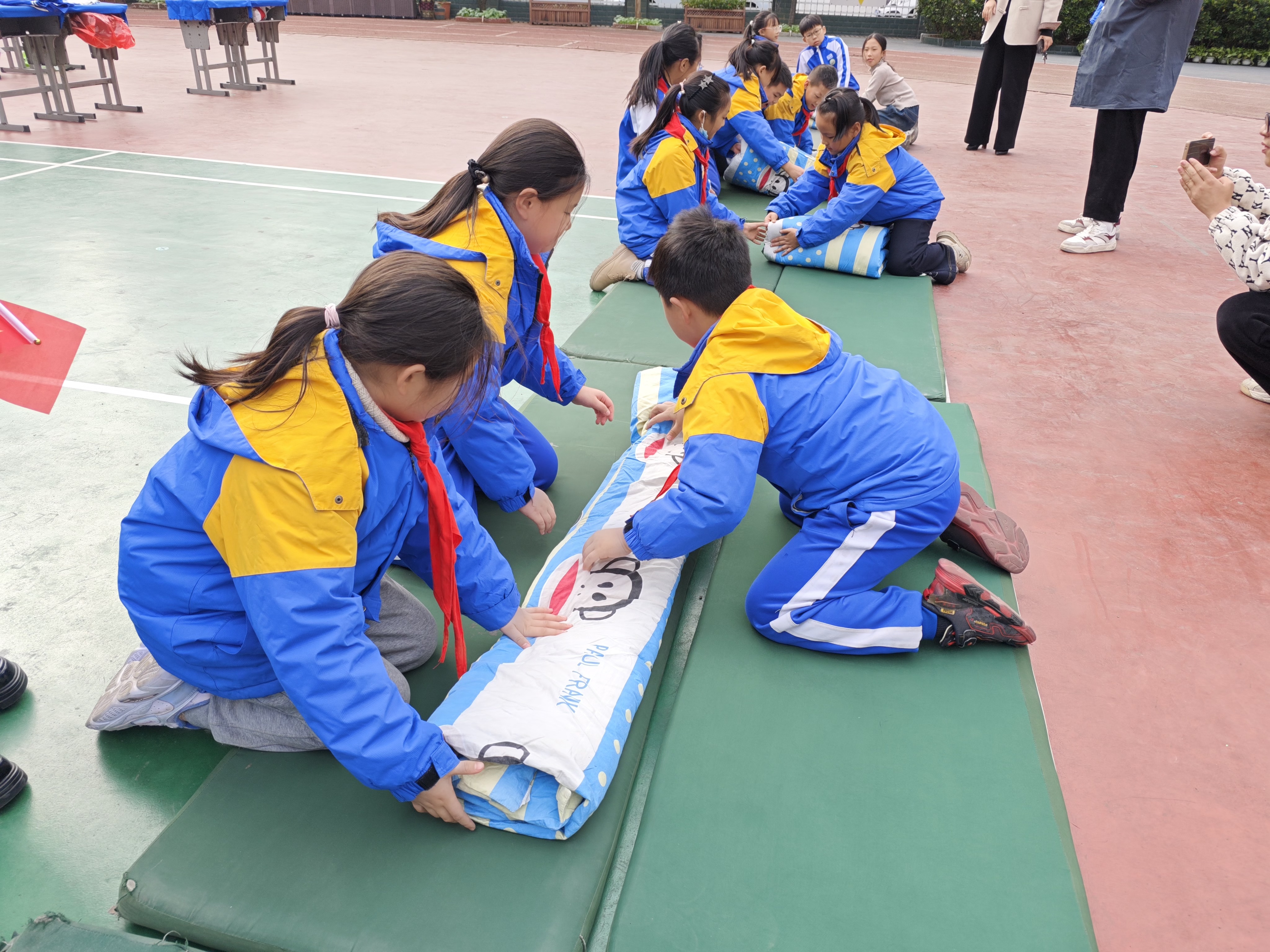 “快点,快点,你们扫地,我装垃圾!”三年级的比赛则在个人穿戴技能展示的基础上,增设了团队合作打扫卫生环节。比赛中,各班的选手们分工明确,配合默契,既展现了良好的团队精神,又秀出了娴熟的劳动技能。