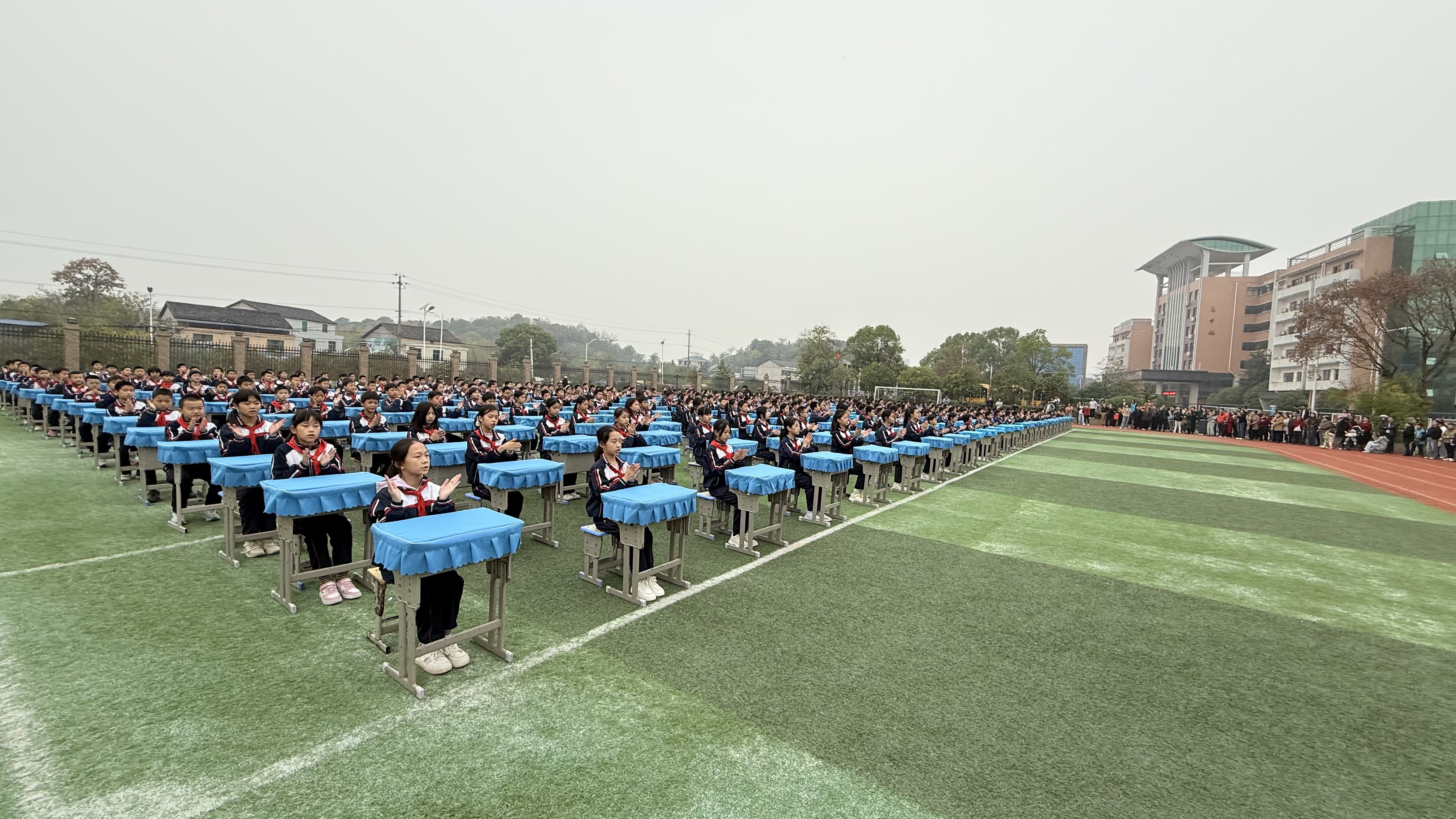 活动现场,随后的课桌舞展示中,孩子们以课桌为道具,伴着欢快的旋律舒展身姿,整齐的动作、饱满的精神,展现了新时代少年的蓬勃朝气。