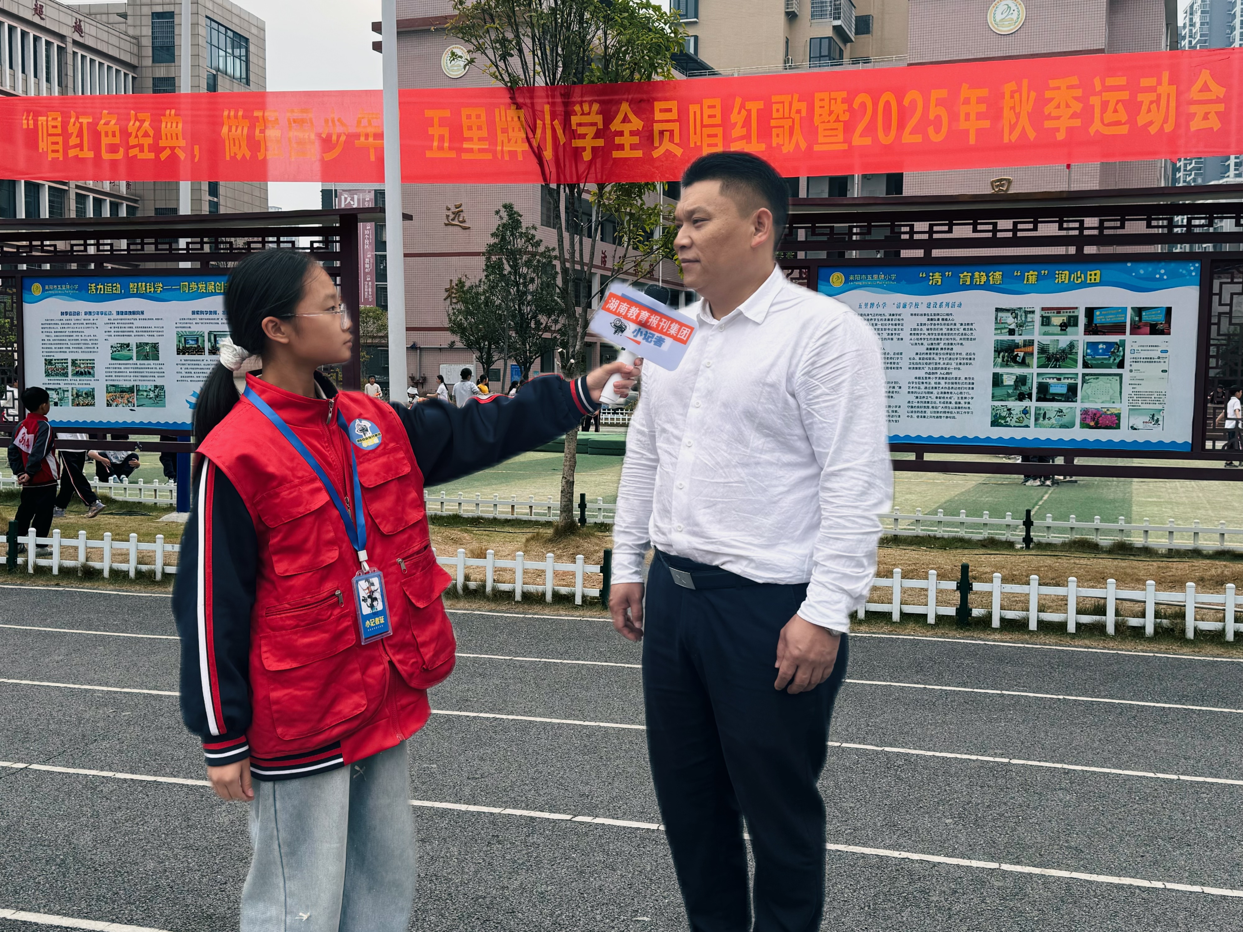湖南教育报刊集团耒阳小记者站(小记者 谢梓晴)10月30日,耒阳市五里牌小学篮球场上彩旗飘扬,呐喊阵阵, 以 “唱红色经典,做强国少年 ” 为主题的全员唱红歌暨2025年秋季田径运动会在这里热烈举行。