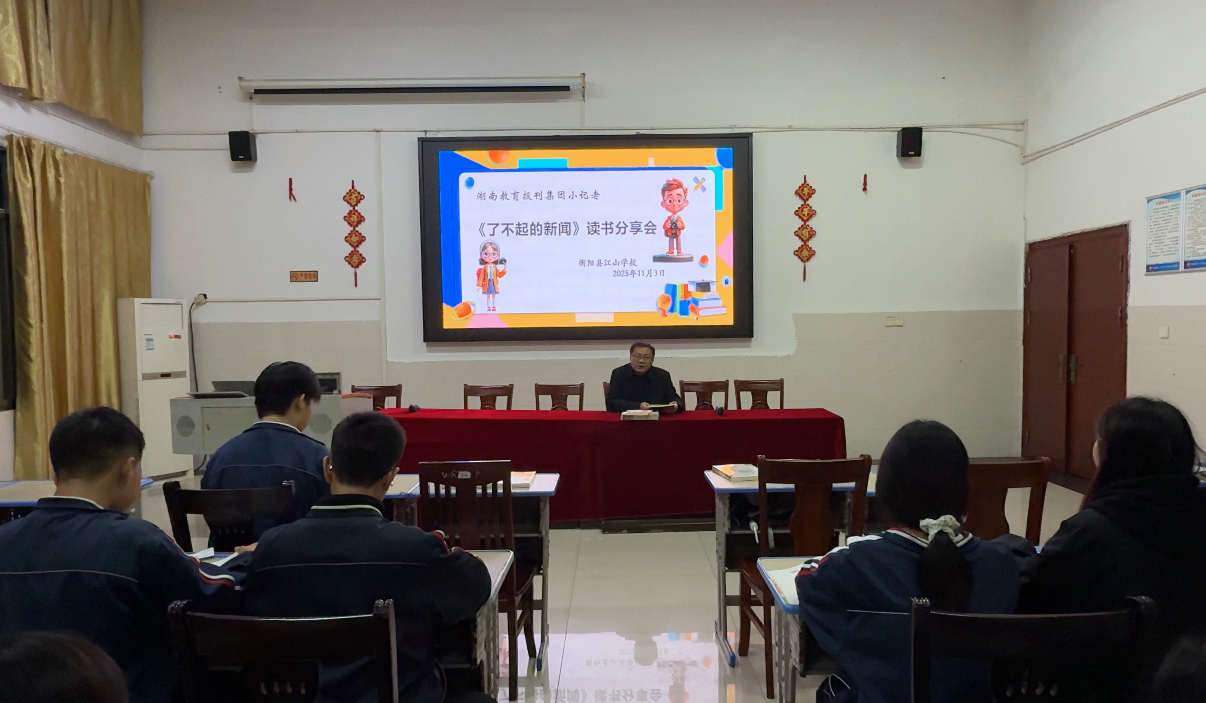 湖南教育报刊集团衡阳县小记者站(小记者 钟馨)11月3日晚,衡阳县江山学校2025年秋季第一次小记者线下培训活动开展。学校高中、初中、小学三个学部的20名小记者及指导教师齐聚多媒体教室,共同阅读由湖南教育报刊集团编著的《了不起的新闻——一本写给孩子的新闻启蒙书》,让新闻的种子在孩子们心中生根发芽,为未来成长积淀素养。