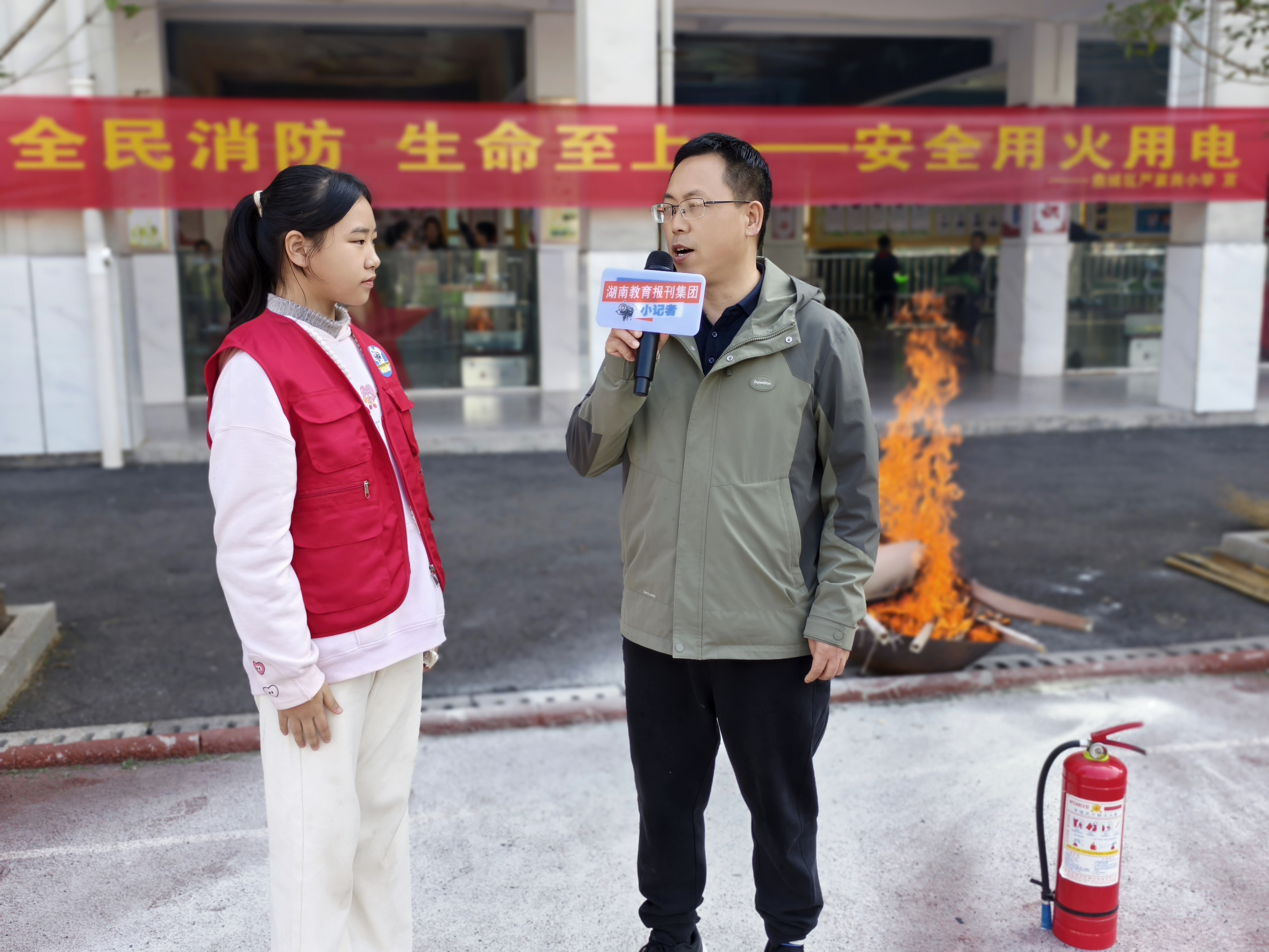 湖南教育报刊集团鼎城区小记者站(小记者 李玥敏)“同学们,学校发现了消防安全隐患,需要大家迅速撤离到操场上,请大家在老师的带领下有序组织,安全撤离。”11月5日上午9点50分,急促的消防警报声在校园响起,常德市鼎城区严家岗小学以“全民消防 安全至上”为主题的消防应急演练活动正式拉开帷幕。