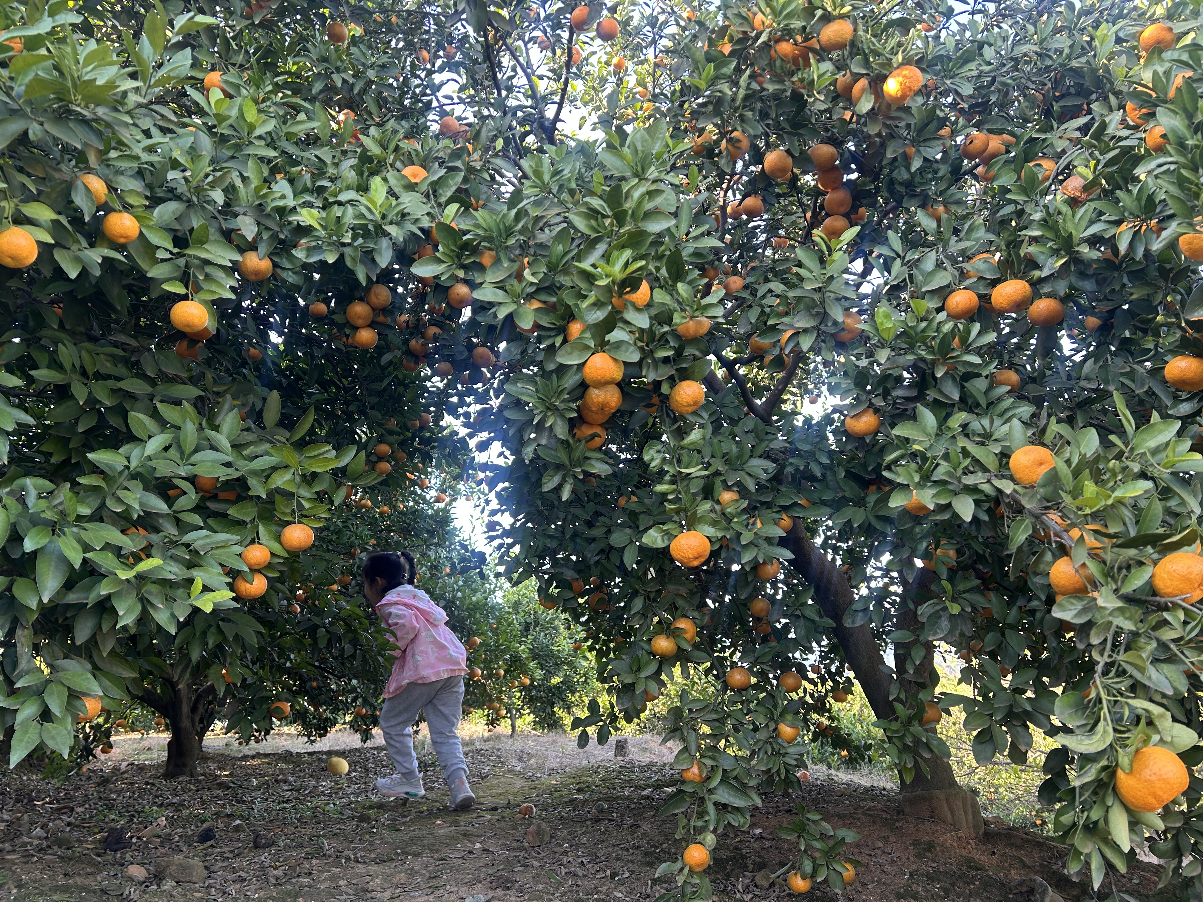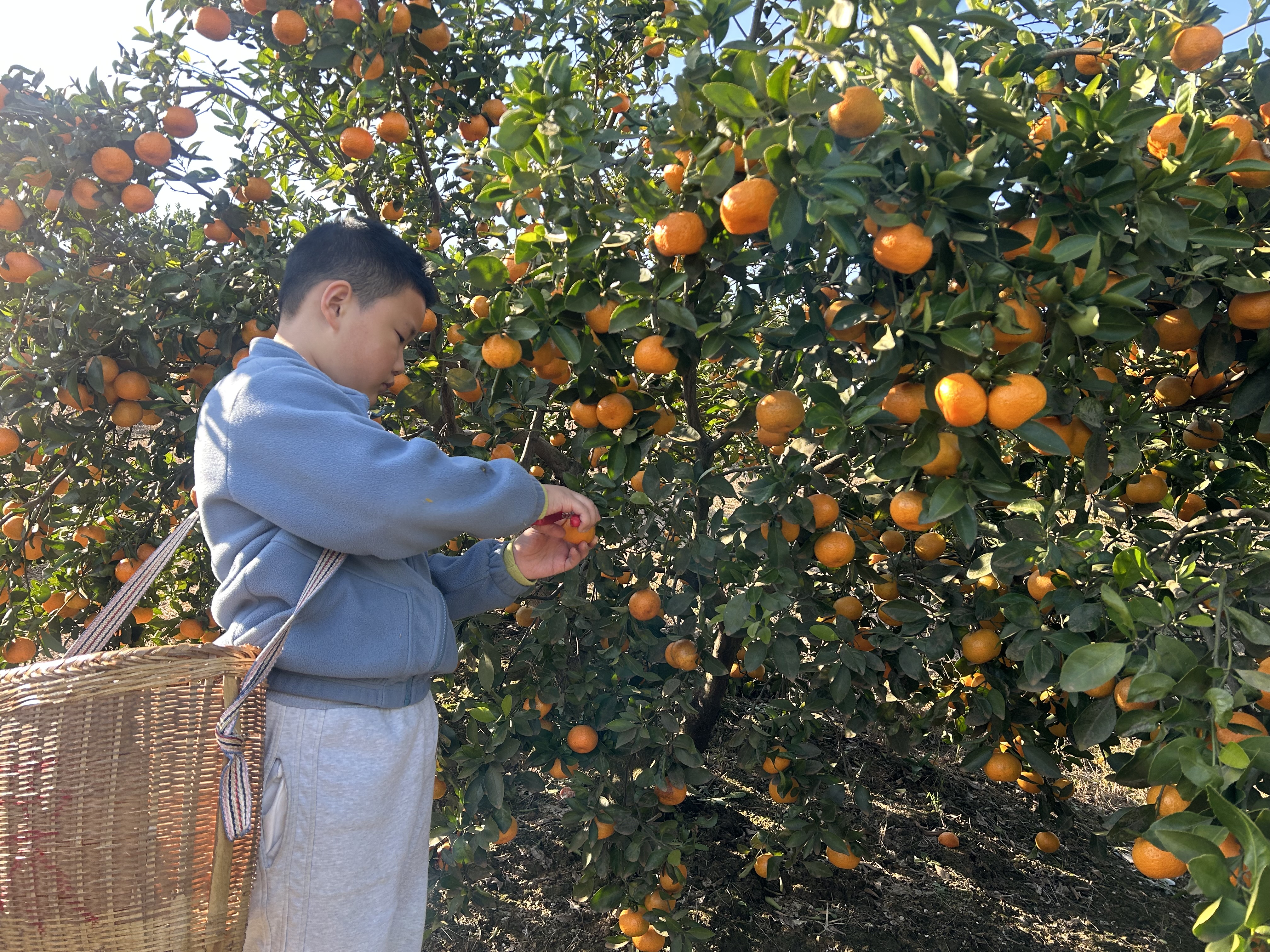 回家时,我们拎着两篮沉甸甸的橘子,车后座飘满果香。妹妹啃着橘子趴在车窗边,嘟囔着:“下周还要来!”我摸着口袋里的半瓣橘子,我忽然懂得,秋天最珍贵的礼物,从来不是摘了满篮果子,而是挤在橘林里,和家人一起接住那些晃悠悠的“小太阳”呀!