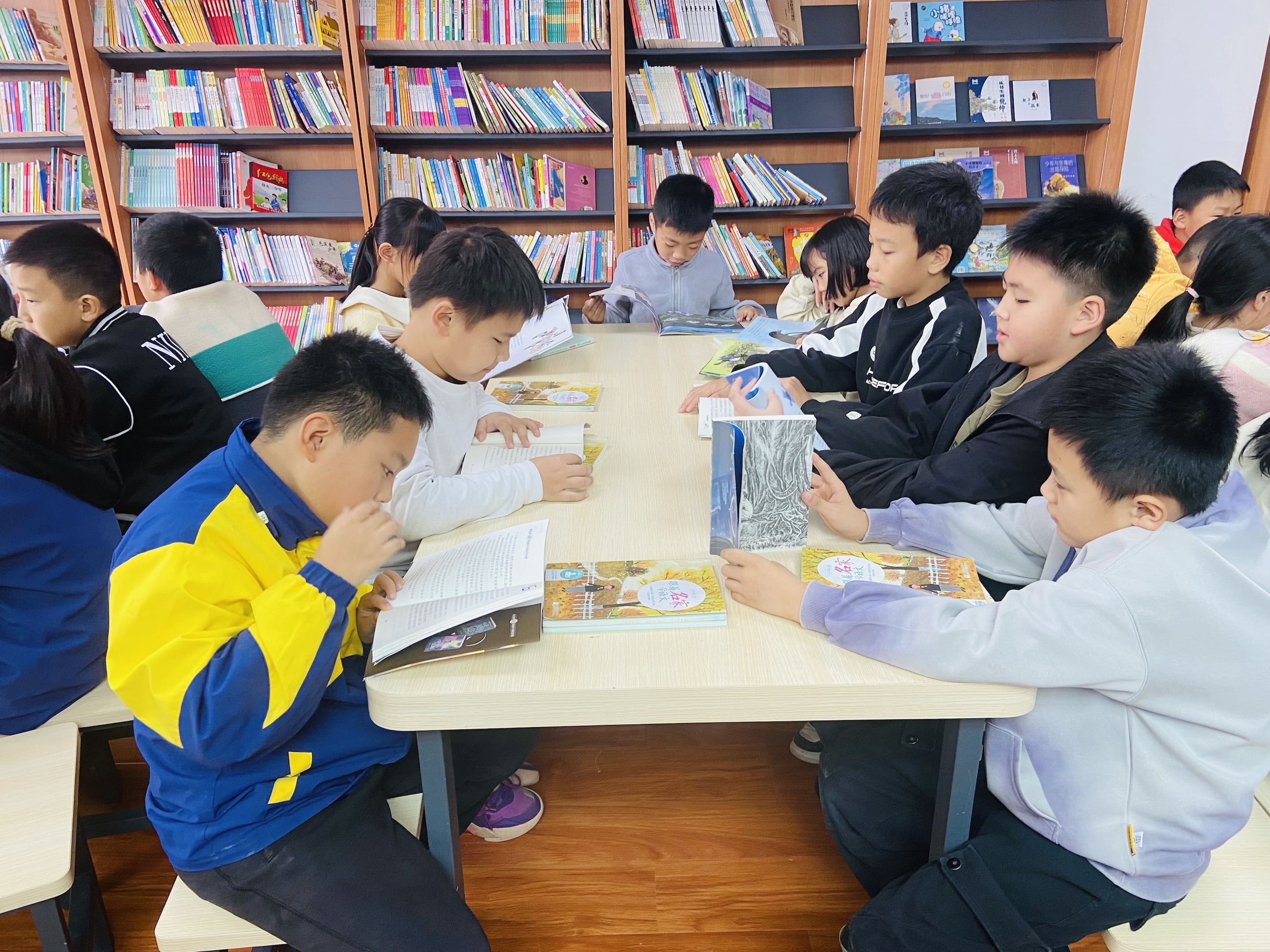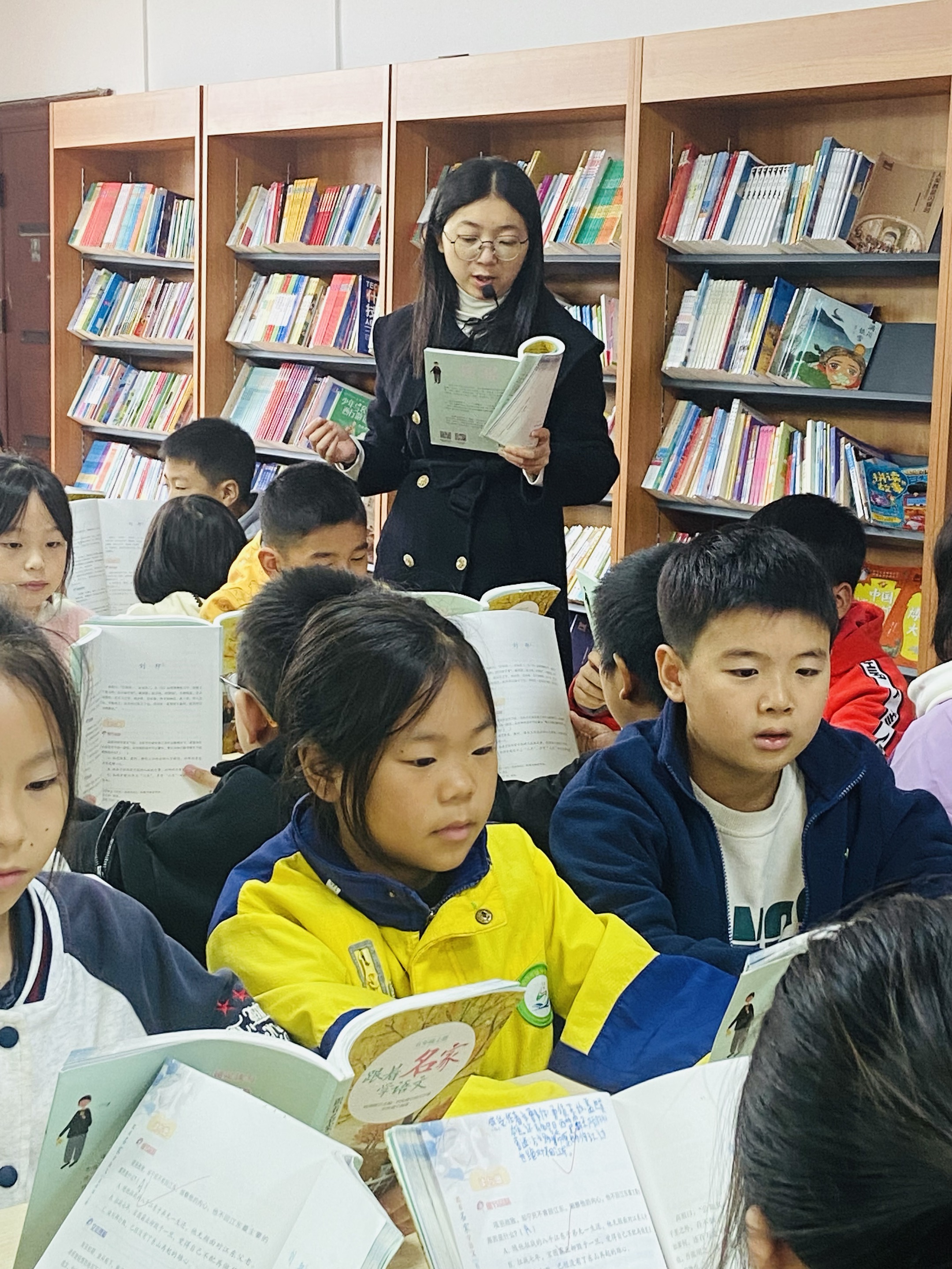 走廊里、教室的图书角,随处可见鲁迅的犀利、冰心的温柔、老舍的京味儿、朱自清的清新……同学们三五成群,或静心阅读,或热烈讨论。