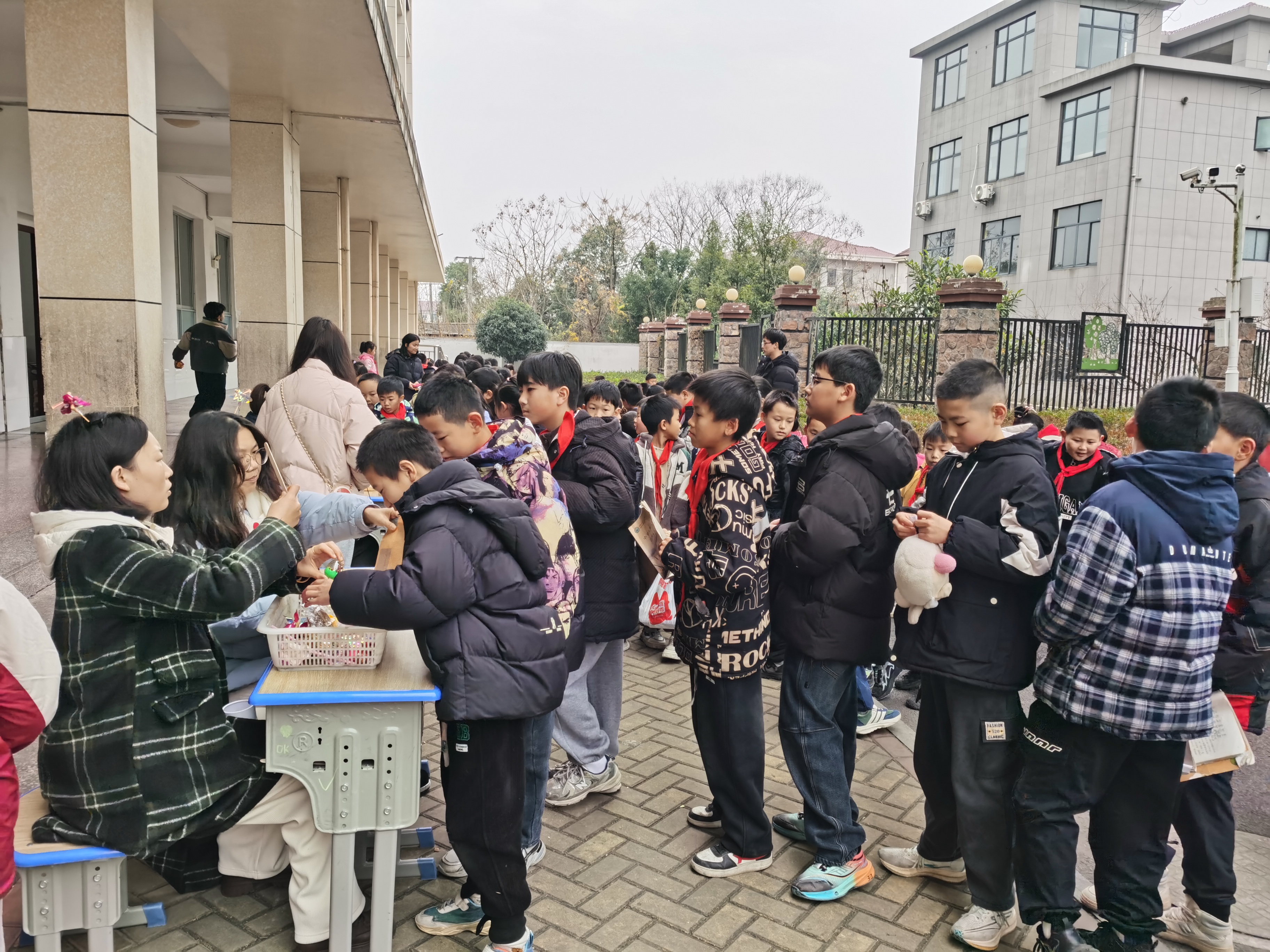 另一边的新年集市区热闹非凡,同学们化身“小摊主”,将闲置的书籍、文具、玩具整齐摆放,稚嫩的吆喝声、讨价还价声此起彼伏,汇成一曲欢快的市集交响曲。大家在交换物品的过程中收获好物,学会分享,深刻体会到了资源循环利用的乐趣。