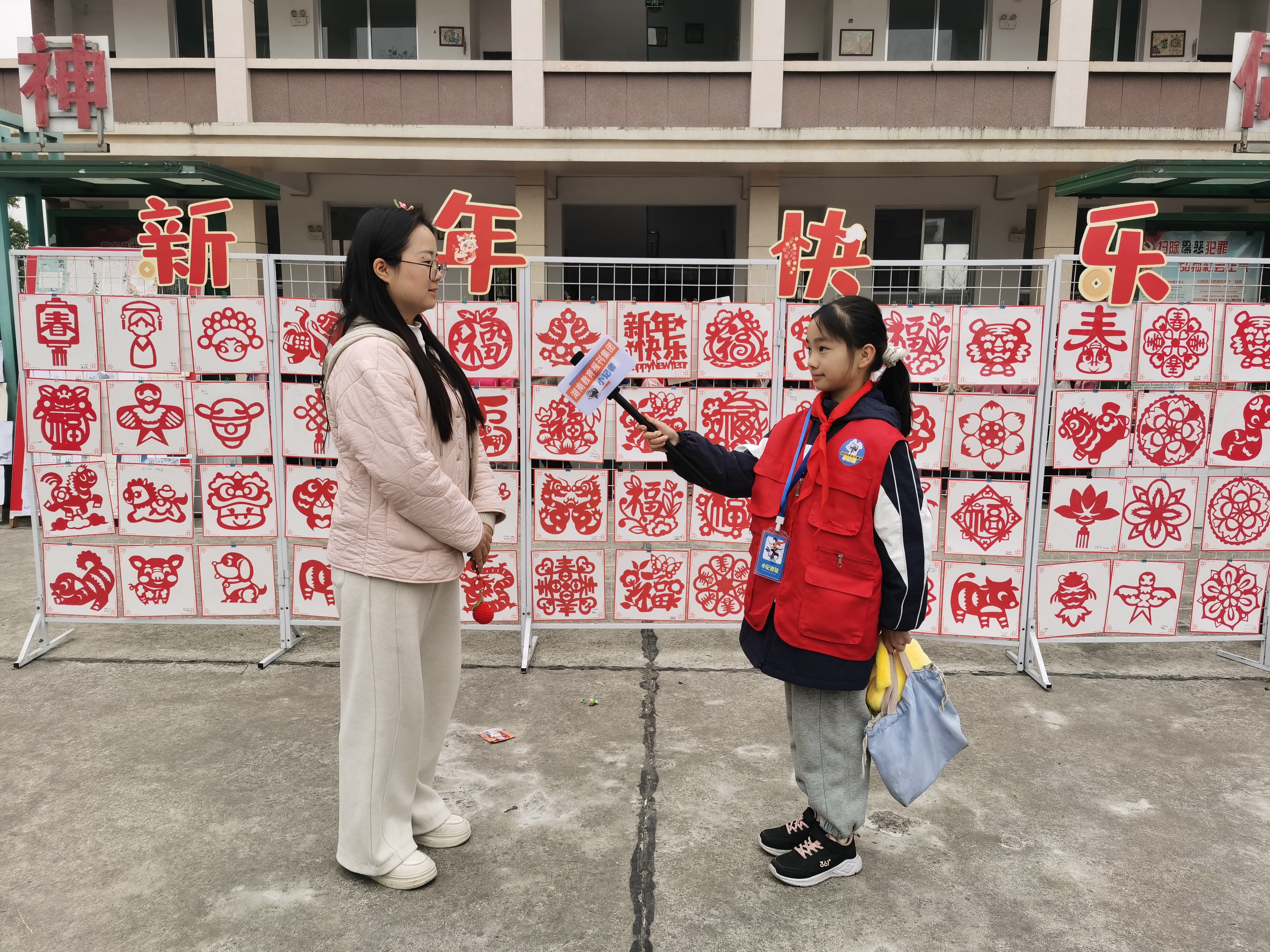 活动现场分为两大板块,处处洋溢着浓郁的新年气息。文化展示区里,硬笔书法作品整齐陈列,一笔一划尽显同学们的认真与功底;读书手抄报展区创意十足,色彩鲜艳的版面、丰富有趣的读书感悟、精致可爱的插画设计,展现着大家在阅读中的收获与思考;诗词过级展示区人气高涨,同学们排着整齐的队伍,自信满满地背诵经典古诗,过关者都能领到心仪的文具奖品,脸上洋溢着满满的成就感;剪纸展台前更是人头攒动,一幅幅憨态可掬的生肖窗花、喜庆吉祥的福字剪纸跃然纸上,引得围观师生纷纷驻足欣赏。