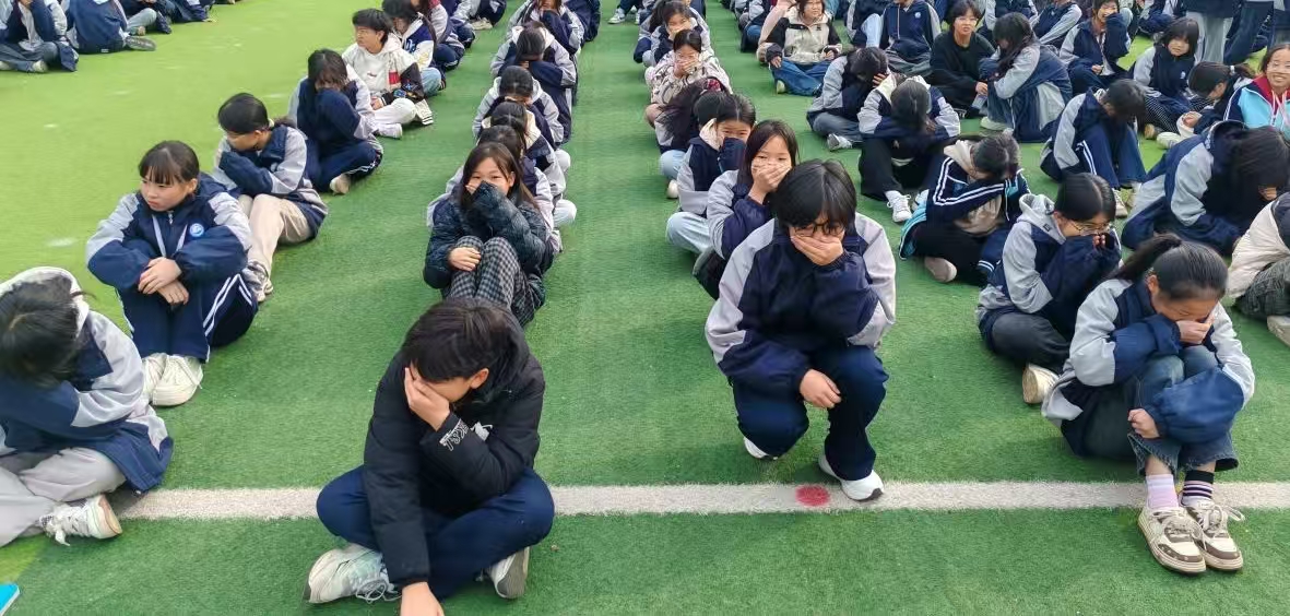 上午10:05整,随着急促的警报响起,班主任立即打开教室前后门,保持通畅,并指挥学生就近躲避在各自的课桌旁,用单手或书保护好头部;待险情解除,同学们临危不乱,立即捂住口鼻,弯腰低姿,沿墙壁右侧依次有序疏散。整个中未出现推挤、奔跑、喧哗等现象,演练现场紧张而有序,展现出成文学子沉着冷静、纪律严明的精神风貌。